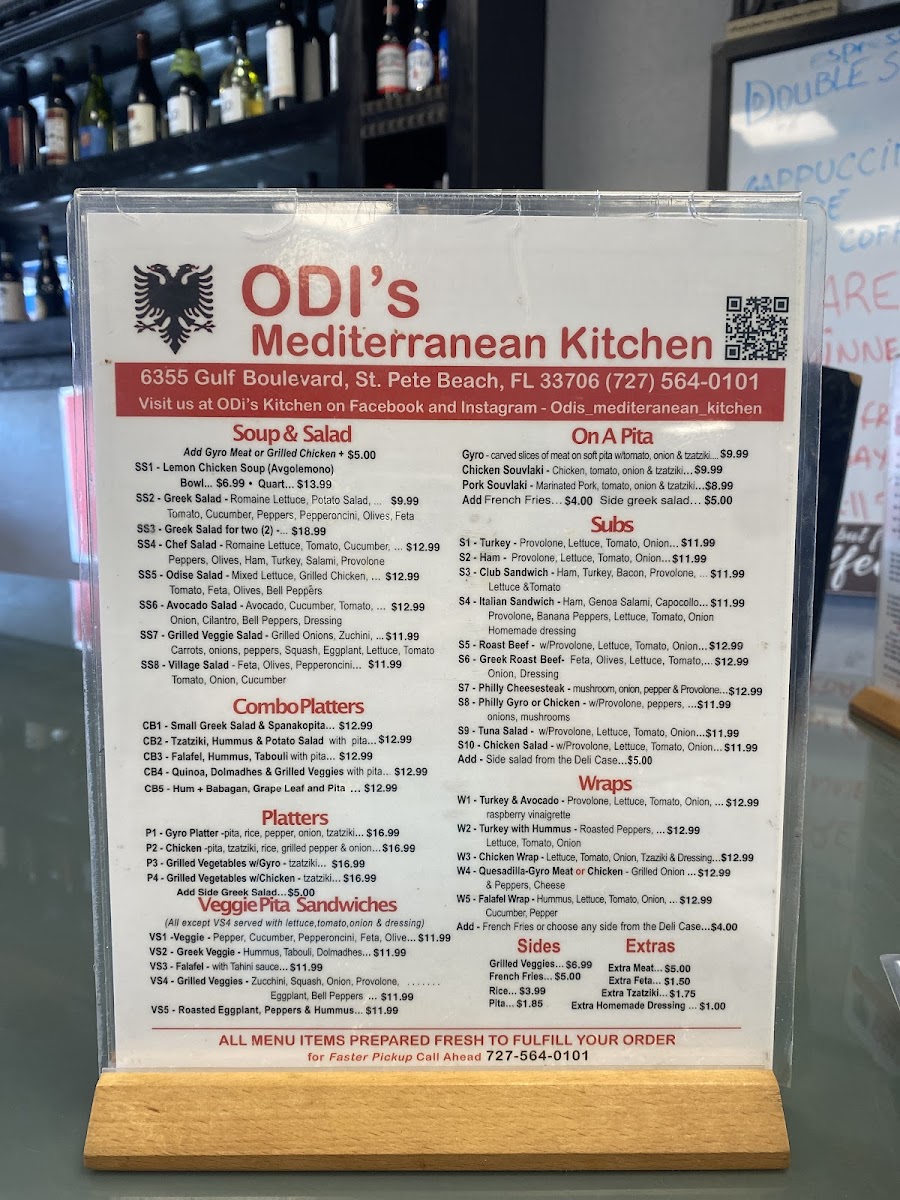 Welcome to Odi’s Mediterranean Kitchen, a gem nestled in St. Pete Beach, Florida. This cozy spot offers a delightful array of authentic Mediterranean dishes that promise to take your taste buds on a flavorful journey. With a menu rich in variety, you can indulge in signature items like the mouthwatering Gyro Sandwich Party Platter and fresh Greek Salads. Guests rave about the homemade falafels and tzatziki, which pair beautifully with their freshly baked pita.